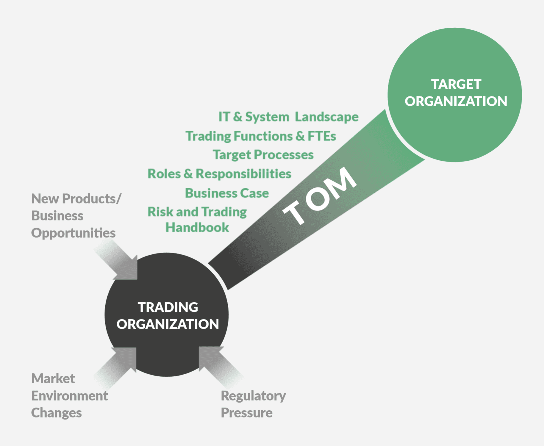 In conclusion, PPAs demand significant adaptations across an organization’s systems and processes. See our approach to develop a Target Operating Model (TOM) on the right to learn how we at FORRS can make your trading organization ready for PPAs.