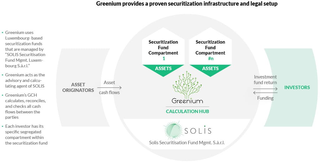Luc Olinger: Greenium is essentially a bridge. We connect institutional investors with physical sustainable assets, like corporate bike leasing portfolios, solar parks, or battery storage systems. Our platform, the Greenium Calculation Hub, manages and structures the financing of these assets through Luxembourg-based securitization funds. It may sound technical, but the core idea is simple: We turn sustainable assets into transparent and investable financial products by securitizing the associated cash-flows. We call it “Securitization-as-a-Service”.