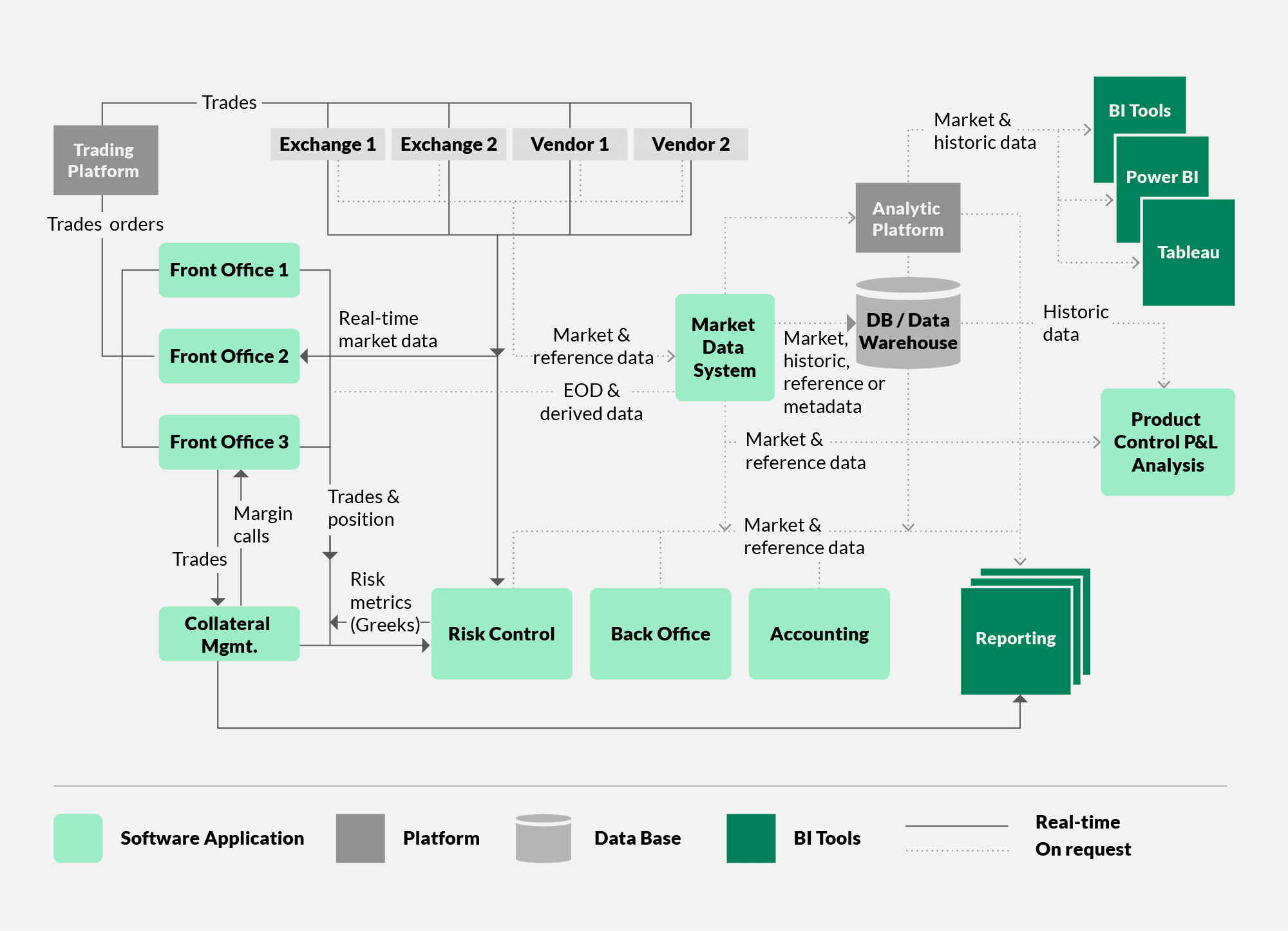Market data flow allowed, creating a high risk of accidental misuse. across the enterprise: Market data from external sources flows through internal systems.