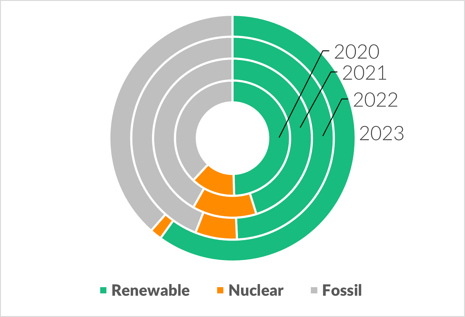 Figure 1: Percentage of Renewable electricity generation (adapted from Energy-Charts).
