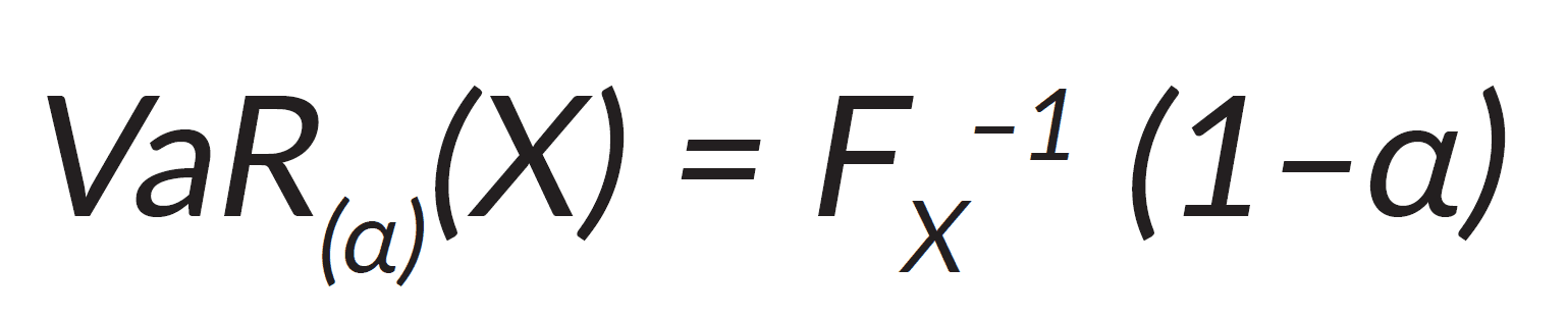 VaR is the 1–α percentile of the distribution function of losses over a certain period (see Figure 1):