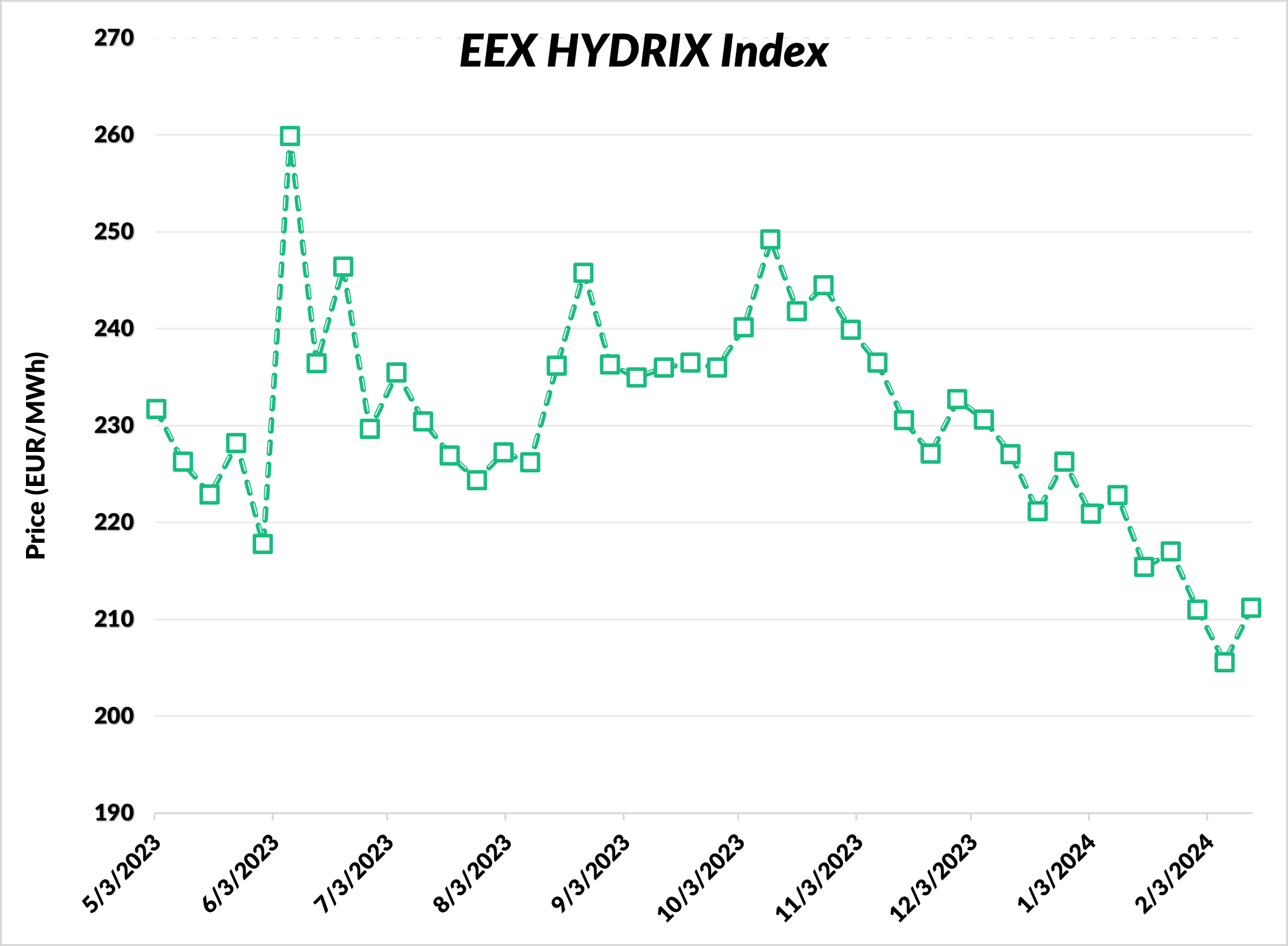 Figure 2: EEX HYDRIX price development (May 23 – Feb 24)